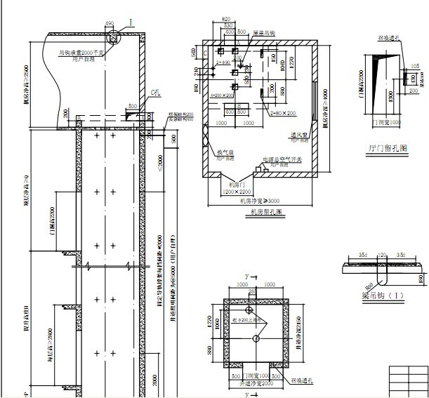 三是平衡錘的位置和一般與電梯機房的拓展方向有關(guān)。四是要注意機房地面的留洞和頂面的吊鉤,還有機房門的凈寬要求和通路要求。